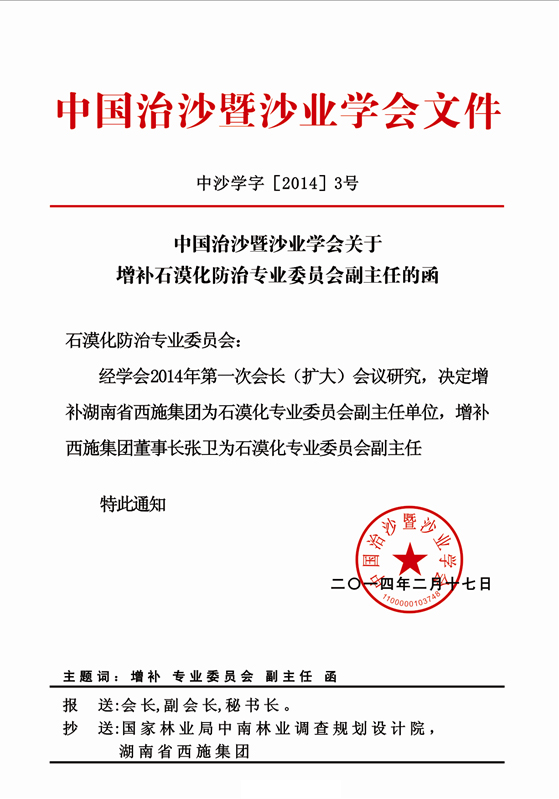 中国治沙暨沙业学会石漠化防治专业委员会副主任单位